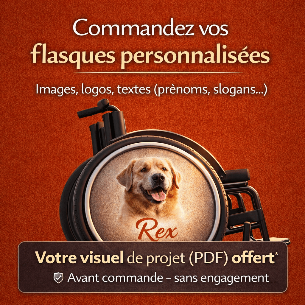 Commandez vos flasques créées avec vos images, vos logos, vos textes ( prénoms, slogans…)