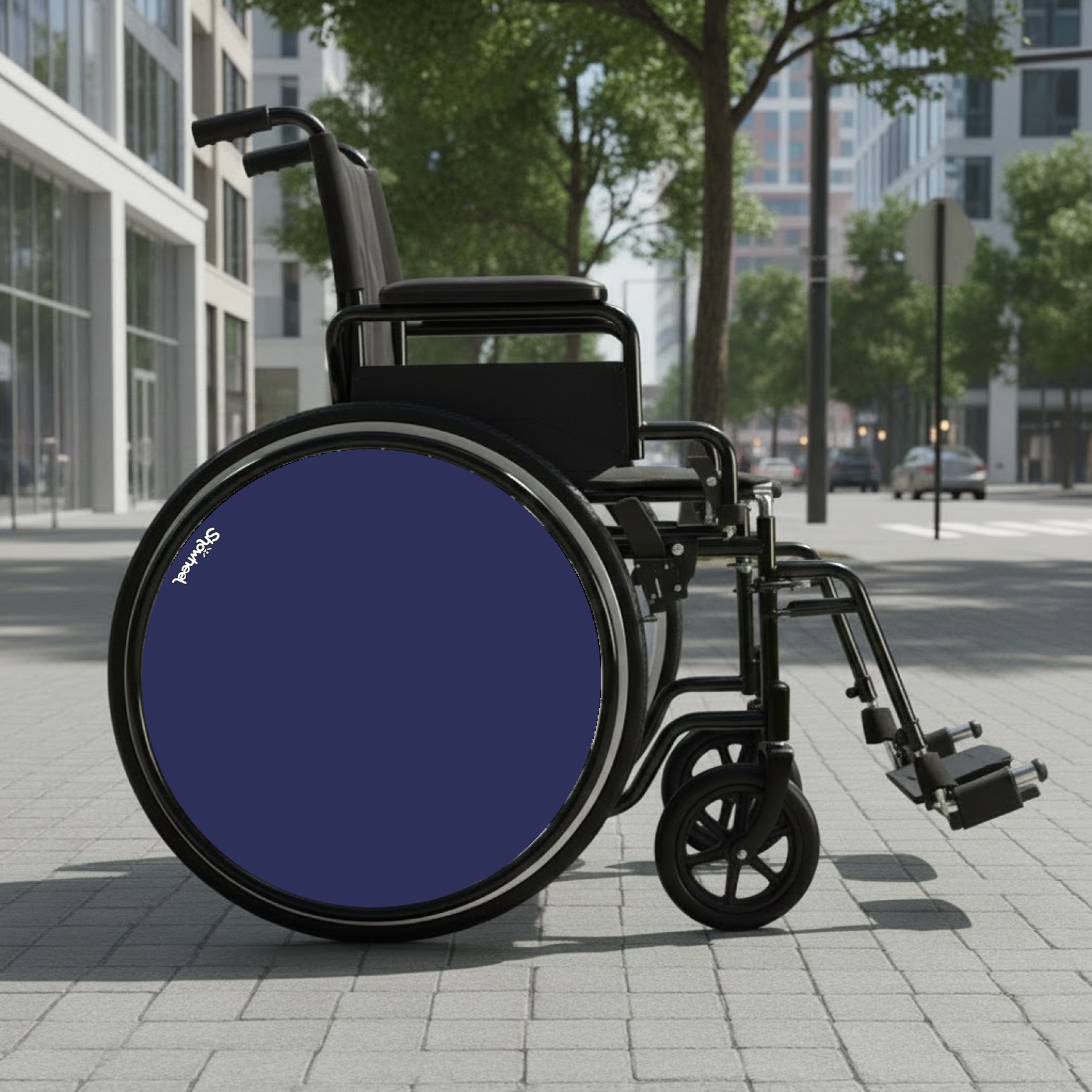 Flasque décorative pour fauteuil roulant, sans attache ni fixation.