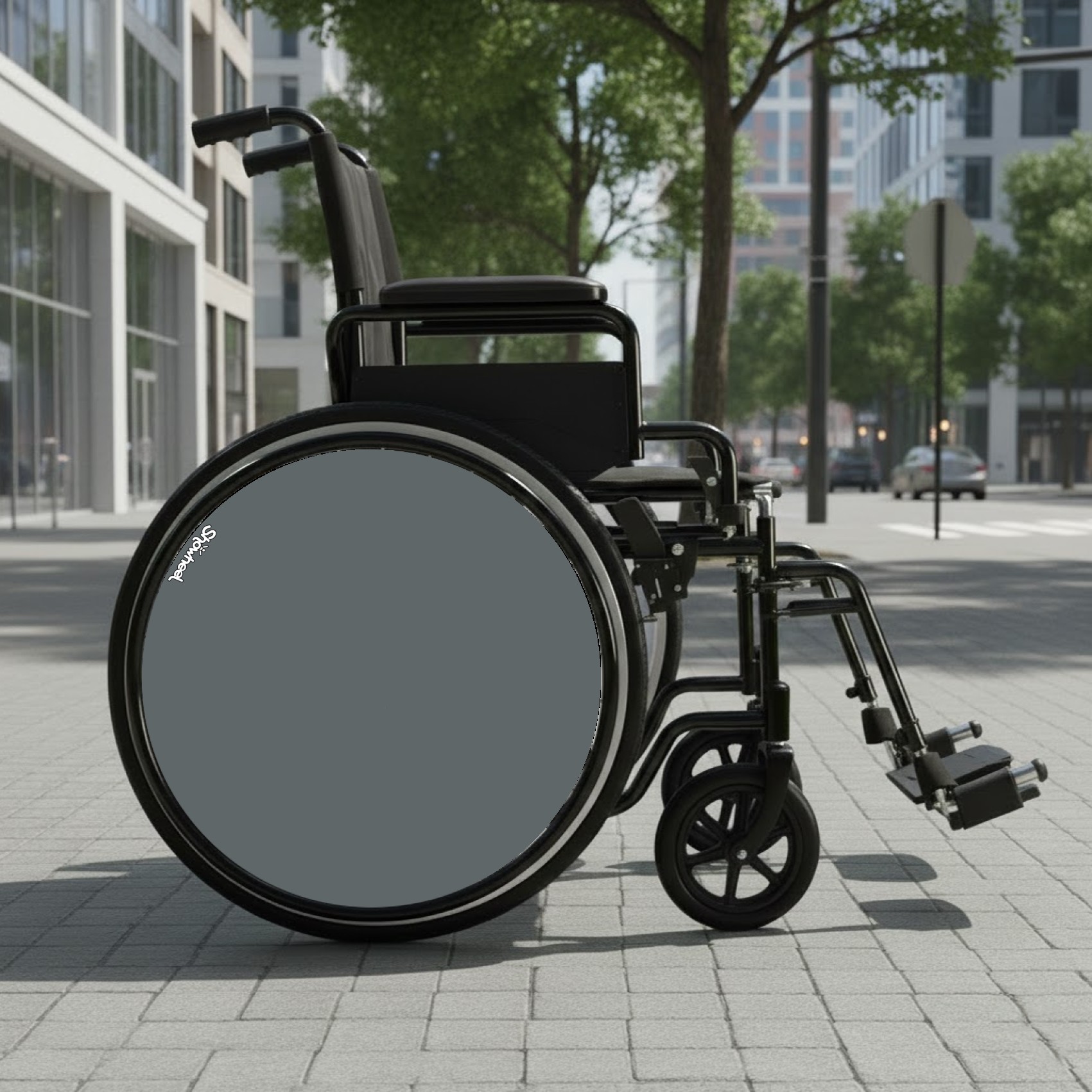 Flasque décorative pour fauteuil roulant, sans attache ni fixation.